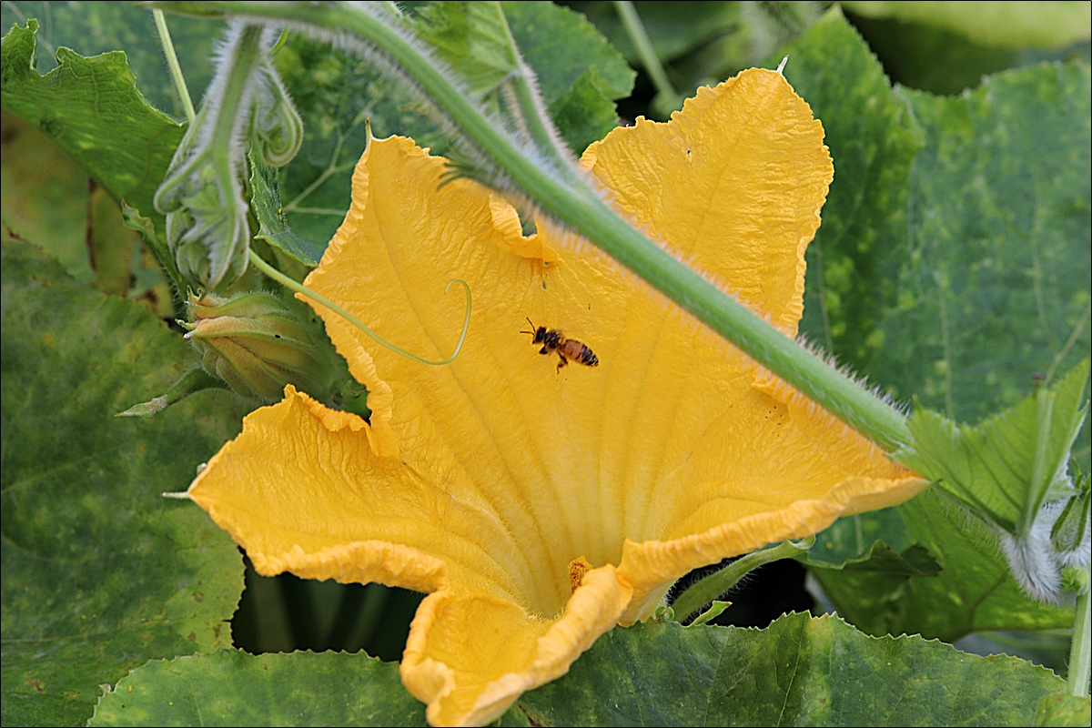 들녘의 밭이나 텃밭 가장자리에 심겨져 있는 호박을 쉽게 볼 수 있는데 볼수록 푸근한 느낌을 받는 꽃이다. 청나라에서 넘어온 박이란 의미로 오랑캐 '胡' 자를 써서 호박이란 이름이 붙었다고 한다.